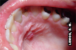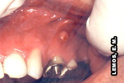 Fístula palatina posterior esquerda. Dente responsável 26, raiz palatina- abscesso apical crônico | ||||