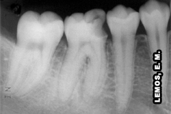 Salienta-se que, a inflamação pulpar não se evidencia através do exame radiográfico. A radiografia presta informações relativas às condições das estruturas dentárias e às eventuais modificações volumétricas e morfológicas da cavidade pulpar, e mostra ainda como se apresenta a região óssea do dente suspeito e dos vizinhos com relação aos aspectos periodontais e periapicais. Entretanto, nas fases avançadas do processo inflamatório pulpar é possível a identificação radiográfica de aumento do espaço pericementário do dente pulpítico decorrente da reabsorção cementária e óssea presente nesta fase do curso inflamatório. Para tanto, apenas a radiografia não constitui um exame capaz de firmar o diagnóstico da inflamação aguda, mas, bem avaliada, fornece dados que acrescidos às outras informações permitem esclarecer dúvidas, por vezes, facilitando o estabelecimento do diagnóstico clínico provável, sobretudo na fase irreversível, quando da identificação do dente envolvido. É necessário tornar relevante que, a radiografia é um exame auxiliar do diagnóstico. A radiografia possui as qualidades ilusórias de todas as sombras. Deve-se observar a presença de cáries, câmara pulpar, nódulos pulpares, o endodonto, qualidades das obturações endodônticas, fratura de instrumentos ou corpos estranhos, fraturas radiculares, reabsorções internas e externas e a existência de lesões radiolúcidas sugerindo necrose pulpar. |